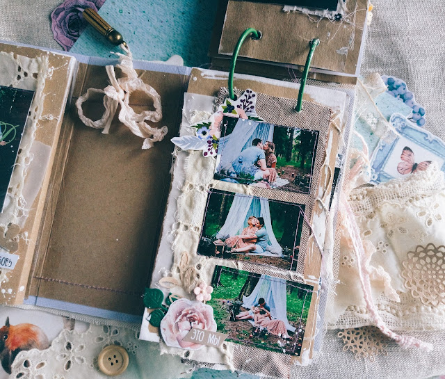 Благодаря слоистости и ткани этот альбомчик невероятно приятно держать в руках, листать, прислушиваясь к шуршанию страниц и мечтать о лете, солнечной поляне, пению птиц и бушующей зелени вокруг...